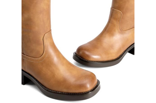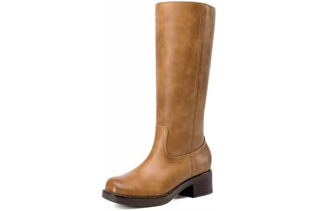 DREAM PAIRS Women's Square Toe Platform Chunky Block Heel Knee High Riding Boots