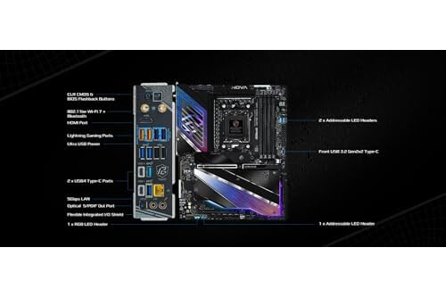 ASRock Phantom Gaming X870E Nova WiFi Socket AM5 AMD Ryzen X870 DDR5 DIMMs 8200 MHz 256 GB ATX Motherboard USB4