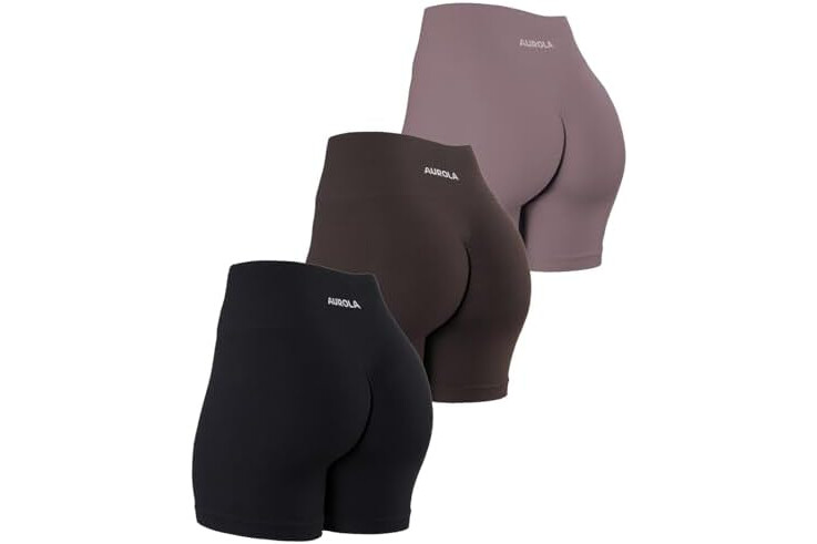 AUROLA Power Workout Shorts for Women Tummy Control Squat Proof Ribbed Thick Seamless Scrunch Active Short