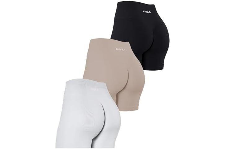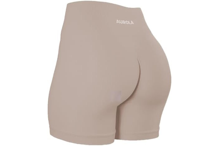 AUROLA Power Workout Shorts for Women Tummy Control Squat Proof Ribbed Thick Seamless Scrunch Active Short
