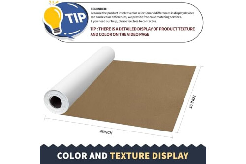 Classic Size: 16 x 48 inches leather repair tape, you can cut any size as needed. Leather texture is soft and smooth, medium thickness, good repair leather repair tape. Professional Leather Repair: leather repair kit are made of high-quality leather,with classic textures and colors. The surface of the leather repair patch is smooth, waterproof and wear-resistant. Onine leather repair patches are strong repair capabilities. Leather Repair patches can be used to repair scratches, tears, holes, burns or cracks, as well as uneven or curved surfaces, meeting your repair needs. Renew your favorite furniture! CONVENIENT AND EASY TO USE:Leather repair patch comes with glue and easy to use. You only need to clean the repair area to keep it dry, cut it out to a suitable size, peel off the backing paper, and stick it to the damaged area to make its surface look new! Wide Applications: leather tape for furniture for repairing/refurbishing sofas, leather recliners, car seats, motorcycle seats, leather furniture, wallets, boots, leather jackets, belts, luggage, and vinyl leather furniture. Our Service - We have over 20 classic leather colors to choose from. Please carefully compare the textures and colors on the detailed page before purchasing, choose the appropriate color. If you have any color concerns, please contact us and we will provide complimentary color matching services.