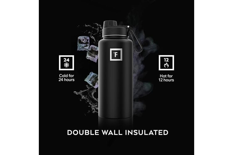 INSULATED SPORTS WATER BOTTLE: Goodbye sweat! The double wall insulation makes the Iron Flask sweat-free! It keeps your drink COLD for up to 24 hours, and HOT for up to 12 hours.