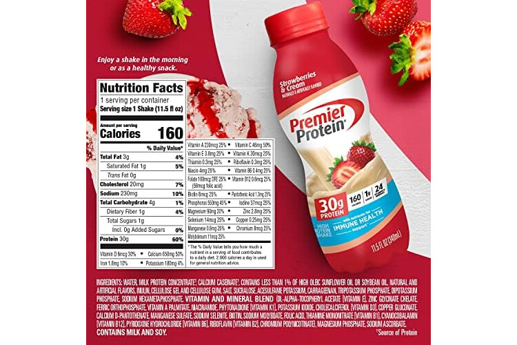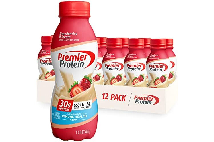 Premier Protein Shake, Strawberries & Cream, 30g Protein 1g Sugar 24 Vitamins Minerals Nutrients to Support Immune Health, 11.5 fl oz (Pack of 12)