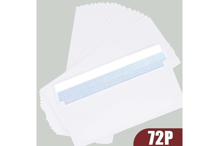 Joyberg 72 Packs #10 Envelopes, Business Envelopes, Envelopes Self Seal, Security Envelopes, Peel and Seal Closure, Size 4-1/8 X 9-1/2 Inches, White, 26LB
