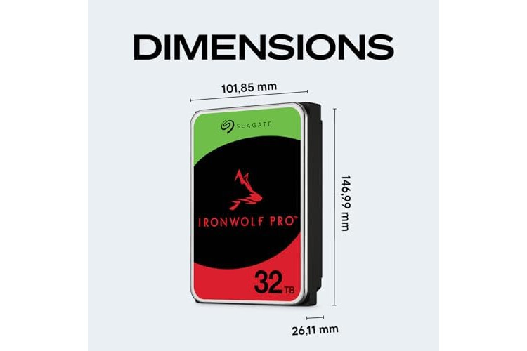 Meet your NAS’s new powerhouse: IronWolf ® Pro 32TB. Built for enterprise-grade performance and reliability, it delivers with CMR technology, AgileArray firmware, and a 550TB/year workload rating. Engineered for 24×7 uptime, it’s ideal for demanding creative workflows,flyer on-prem AI development, and scalable enterprise environments—with a 5-year limited warranty and 3 years of Rescue Data Recovery for total peace of mind.
