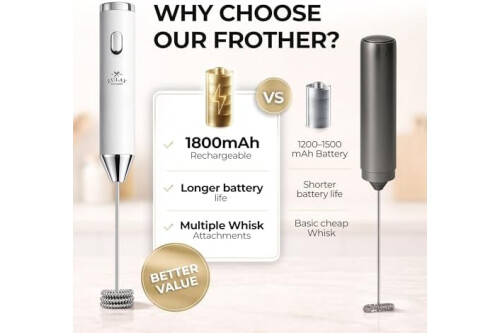 • MULTI-PURPOSE: Whether you're frothing traditional or alternative milks, mixing protein shakes, stirring coffee, or blending electrolytes, this milk frother rechargeable handles it all with ease. Its flexibilit...