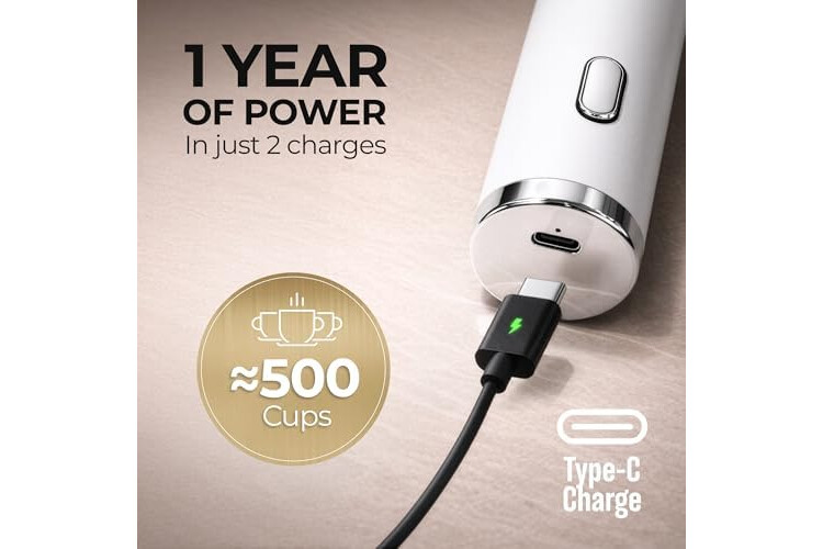 • POWERFUL FROTHING EXPERIENCE: Skip the coffee shop run and enjoy lattes, cappuccinos, matcha, hot chocolate, powdered drinks, or iced coffee at home with this milk frother. With a 8,000 RPM motor and spiral rings, this coffee foam maker turns ordinary milk to frothy perfection in seconds.