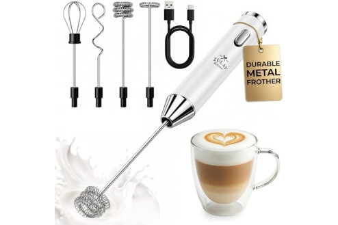 Zulay Kitchen Metal Rechargeable Milk Frother, 3 Whisk Attachments Handheld Frother Wand, 1800mAh USB-C Charging, Electric Drink Mixer for Protein, Matcha & Powders - One Charge Lasts up to 6 Months