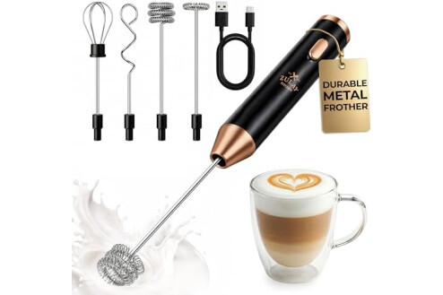 Zulay Kitchen Metal Rechargeable Milk Frother, 3 Whisk Attachments Handheld Frother Wand, 1800mAh USB-C Charging, Electric Drink Mixer for Protein, Matcha & Powders - One Charge Lasts up to 6 Months