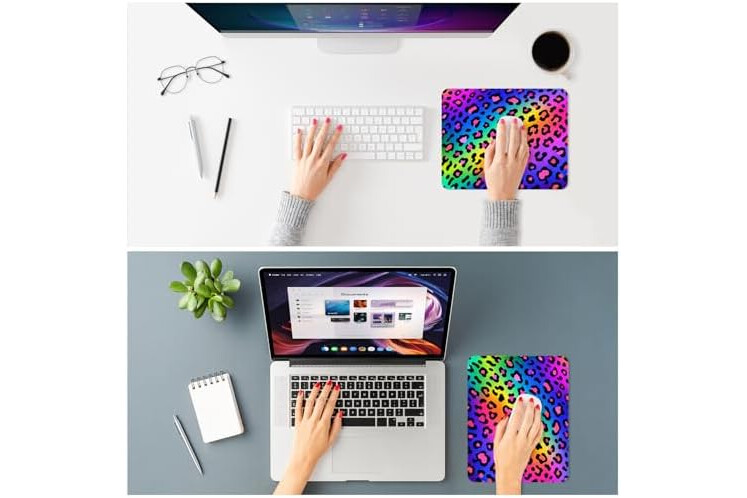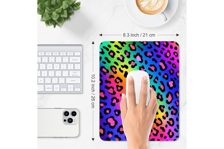 ITNRSIIET Mouse Pad Non-Slip Rubber Base Smooth Surface Stitched Edges Waterproof Durable Compatible with All Mice for Office & Gaming, Desk Accessory, 10.2x8.3x0.12 inch, RainbowLeopard