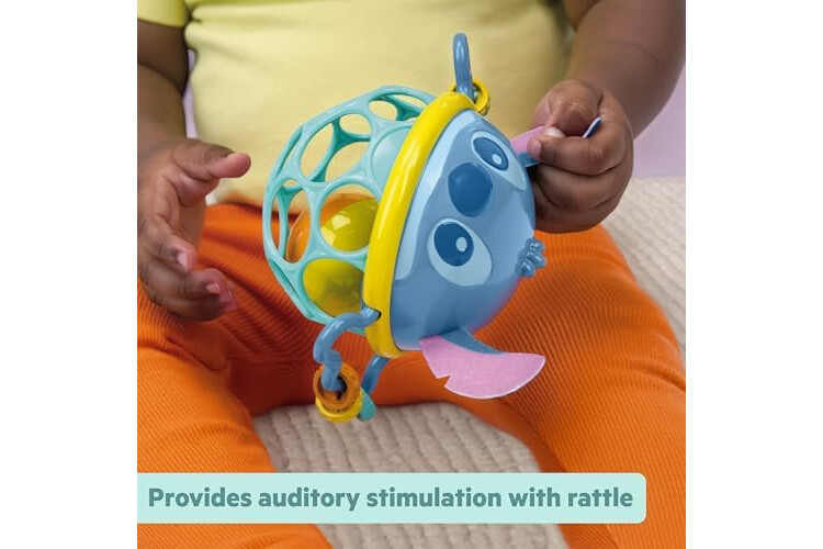Disney Baby Stitch Oball Rattle by Bright Starts, Easy Grasp Baby Toy with Jingle Ball, Sensory Rattle for Newborn Infant 0-6 Months, Baby Toys 3-6 Months