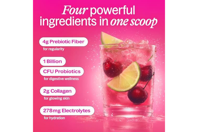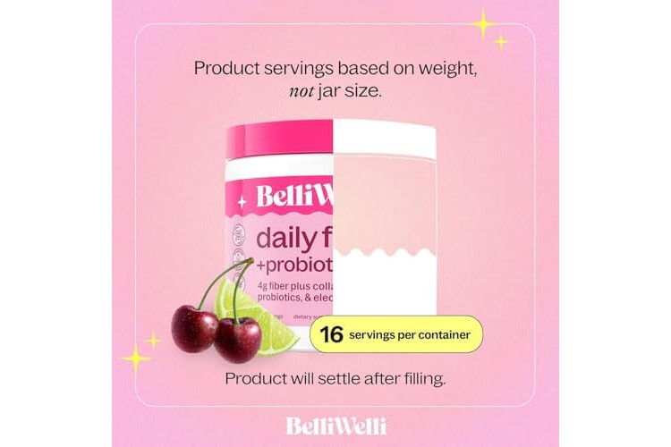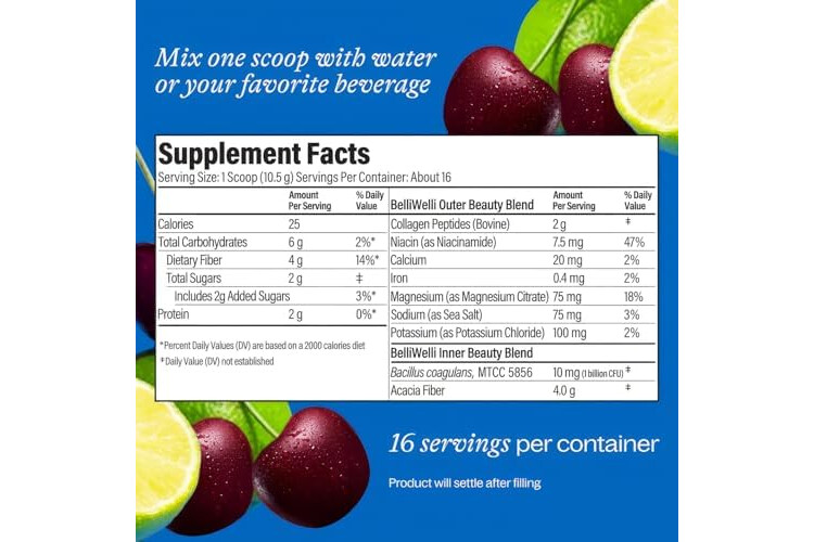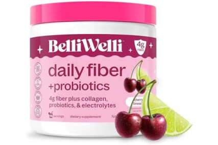 Belli Welli Fiber Supplement for Women&Men, Premium Daily Fiber Powder from Organic Acacia Fiber Added Collagen, Electrolytes&Probiotics, No Bloat, Constipation&Gut Health Support (Cherry Limeade)