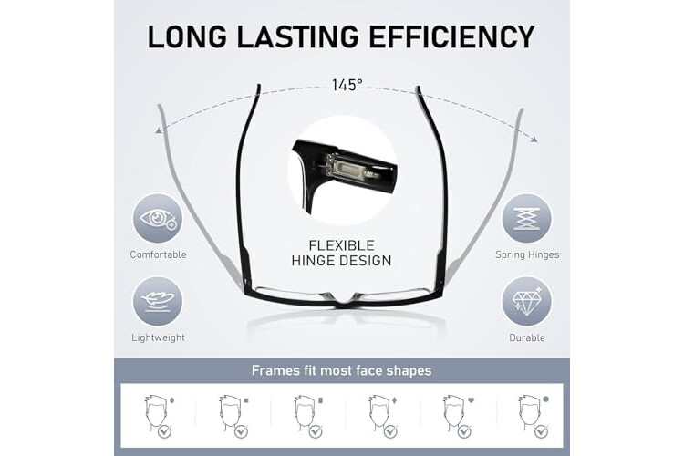 • SPRING HINGES: Mens reading glasses also have features such as spring hinges that make them comfortable to wear for long periods of time