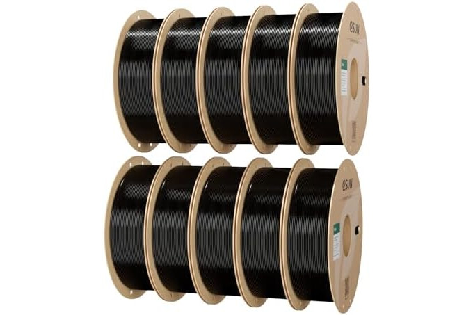 【Bulk PLA+ 10KG Bundle for Batch Printing】eSUN PLA+ 10KG Bundle provides cost-effective options for print farms and large-scale printing projects. Neatly winding and color consistancy for continous printing. Color: Black 10KG, total 10 rolls, 1kg per roll.
