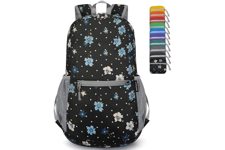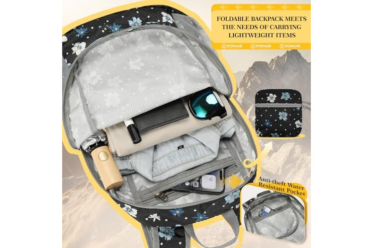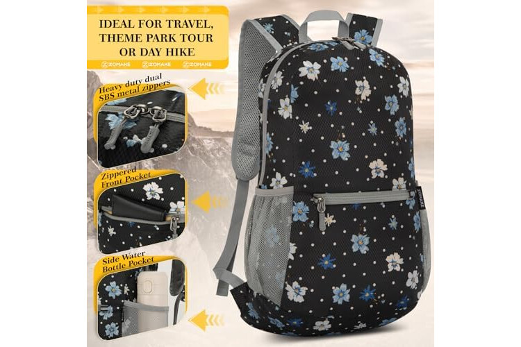 ZOMAKE Ultra Lightweight Hiking Backpack 20L, Packable Small Backpacks Water Resistant Daypack for Women Men(Black,Floral pattern)