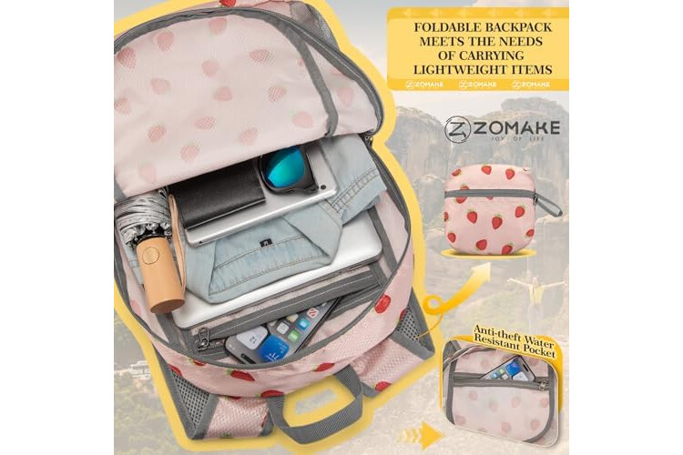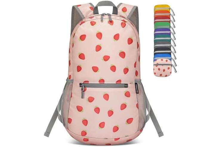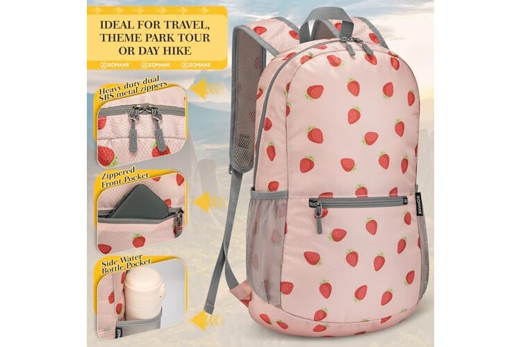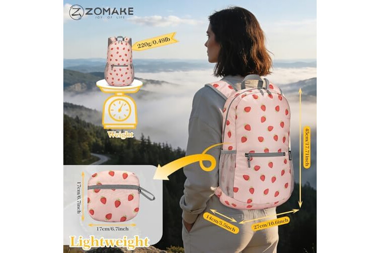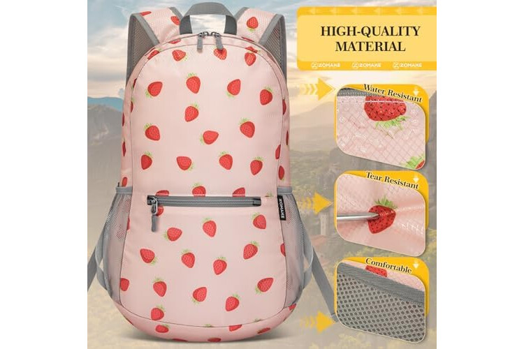 ZOMAKE Ultra Lightweight Hiking Backpack 20L, Packable Small Backpacks Water Resistant Daypack for Women Men(Strawberry print)