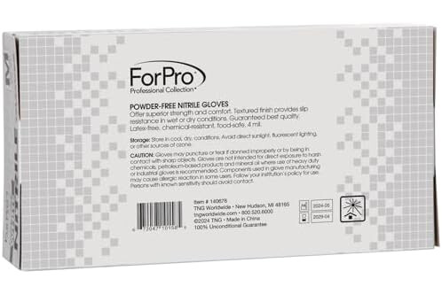 ForPro Disposable Nitrile Gloves, Chemical Resistant, Powder-Free, Latex-Free, Non-Sterile, Food Safe, 4 Mil