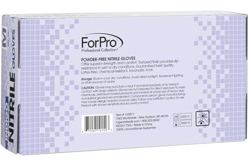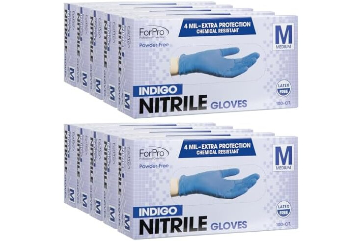 ForPro Disposable Nitrile Gloves, Chemical Resistant, Powder-Free, Latex-Free, Non-Sterile, Food Safe, 4 Mil