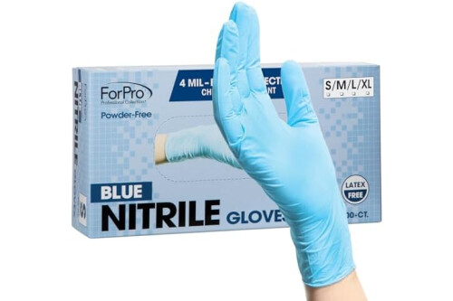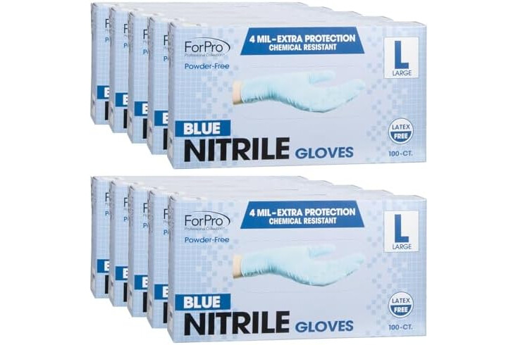 ForPro Disposable Nitrile Gloves, Chemical Resistant, Powder-Free, Latex-Free, Non-Sterile, Food Safe, 4 Mil