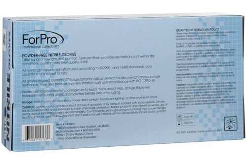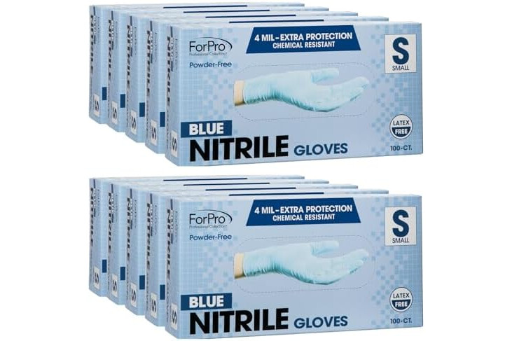 ForPro Disposable Nitrile Gloves, Chemical Resistant, Powder-Free, Latex-Free, Non-Sterile, Food Safe, 4 Mil
