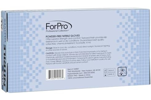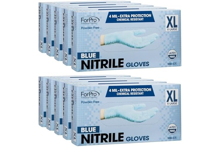 ForPro Disposable Nitrile Gloves, Chemical Resistant, Powder-Free, Latex-Free, Non-Sterile, Food Safe, 4 Mil