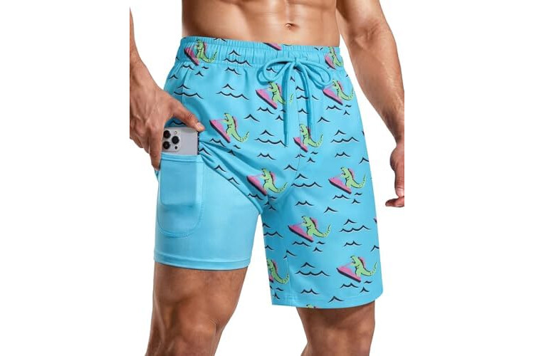 Mens Swim Trunks with Compression Liner 7 Inch Swim Shorts Quick Dry Board Shorts Bathing Suit for Beach
