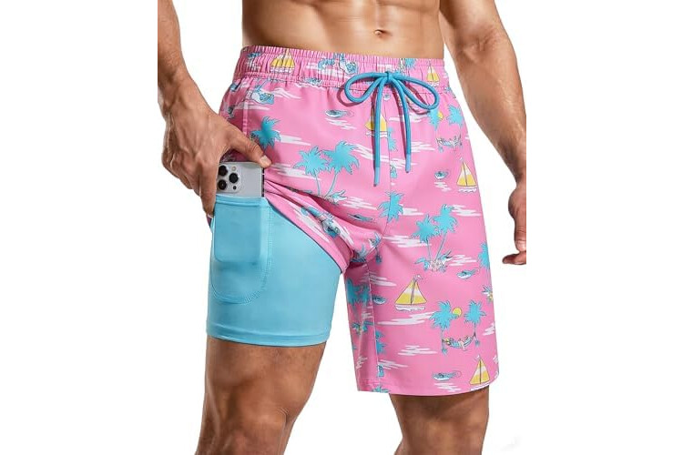 Mens Swim Trunks with Compression Liner 7 Inch Swim Shorts Quick Dry Board Shorts Bathing Suit for Beach