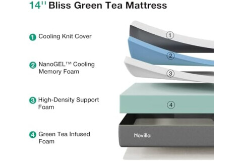 Novilla Bliss Green Tea King Size Mattress, 14 Inch Gel Memory Foam Mattress King in a Box for Cooling Comfort with Nylon Cover, Pressure Relief & Spine Alignment with CertiPUR-US Certified Foams