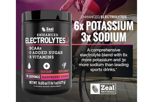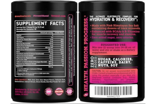 ENHANCED ELECTROLYTES POWDER FOR HYDRATION & RECOVERY - Zeal Electrolyte Powder is enhanced with BCAAs, Pink Himalayan Salt, and B-Vitamins to support stamina during workouts, speed up post-exercise recovery, and stay hydrated for longer.