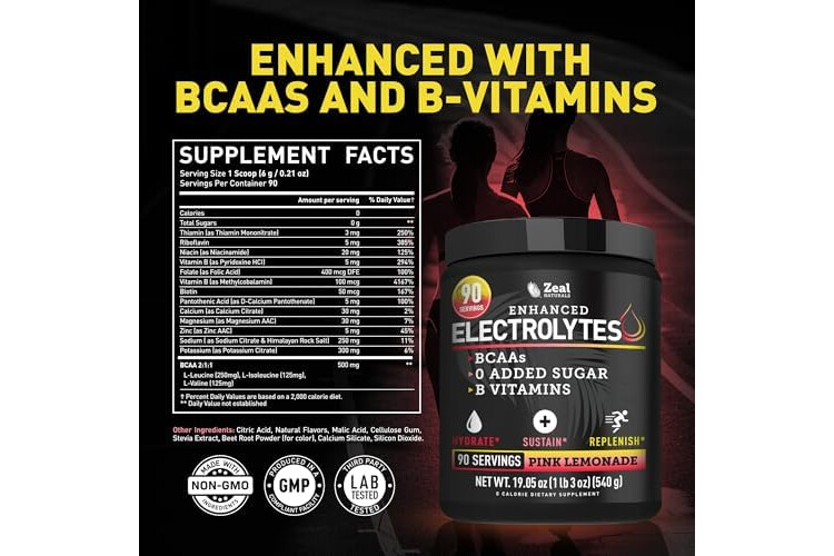 • ENHANCED ELECTROLYTES POWDER FOR HYDRATION & RECOVERY - Zeal Electrolyte Powder is enhanced with BCAAs, Pink Himalayan Salt, and B-Vitamins to support stamina during workouts, speed up post-exercise recovery, and stay hydrated for longer.