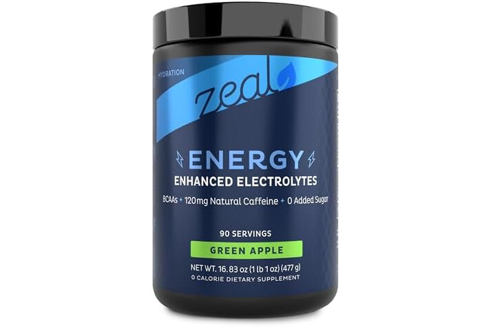 Zeal Electrolyte Powder - 90 Servings | Keto Electrolytes Powder | Zero Sugar, BCAAs, B-Vitamins | Potassium, Zinc, Magnesium | Hydration Powder Recovery Drink | Green Apple