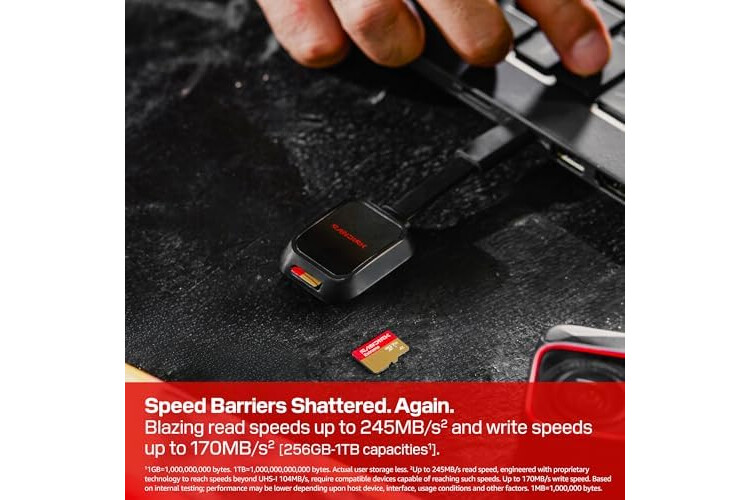Record epic 5K[3] point-of-view and 4K UHD[3] aerial video – and expand your Android device, laptop, and handheld gaming console storage – with the SANDISK Extreme microSD UHS-I card made for enthusiasts and creators. Enjoy longer recording sessions and free up space on your devices with up to 2TB[1] of storage. Manage and organize your files with our intuitive SANDISK Memory Zone app[11]. Proudly rated A2 for performance[6], the card loads apps quickly and enables smoother run and usage for an enhanced device experience. Designed, built, and tested to go the distance, you can trust SANDISK Extreme microSD UHS-I cards to help protect every shot.