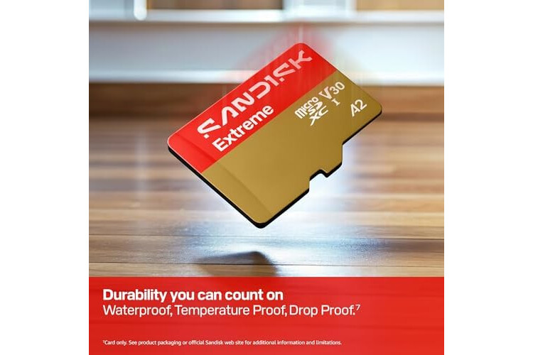 Record epic 5K[3] point-of-view and 4K UHD[3] aerial video – and expand your Android device, laptop, and handheld gaming console storage – with the SANDISK Extreme microSD UHS-I card made for enthusiasts and creators. Enjoy longer recording sessions and free up space on your devices with up to 2TB[1] of storage. Manage and organize your files with our intuitive SANDISK Memory Zone app[11]. Proudly rated A2 for performance[6], the card loads apps quickly and enables smoother run and usage for an enhanced device experience. Designed, built, and tested to go the distance, you can trust SANDISK Extreme microSD UHS-I cards to help protect every shot.