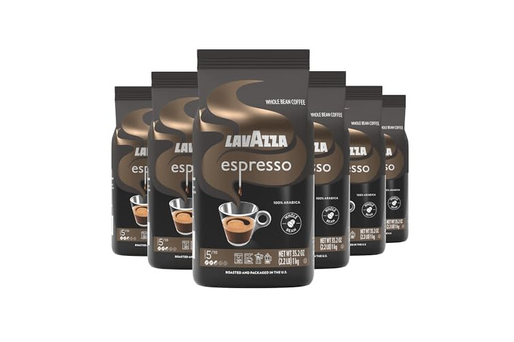 LAVAZZA ESPRESSO: A 2.2 lb whole bean coffee bag ideal for espresso or drip preparation (pack of 6).