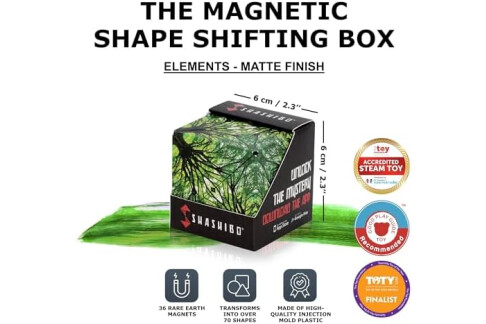 Shashibo Shape Shifting Box - Award-Winning STEM Fidget Toy with Ultra Strong Magnets - Puzzle Cube Transforms Into 100+ Shapes, Perfect Sensory Gift for Kids, Teens, and Adults (Elements)
