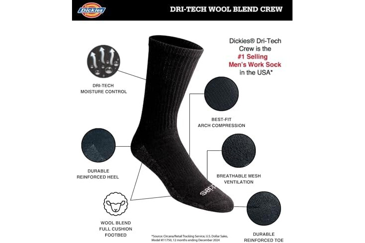 Dickies Men's Dri-tech Original Moisture Control Crew Socks Multipack, Black (6 Pairs), Shoe Size: 6-12, Pack of 6