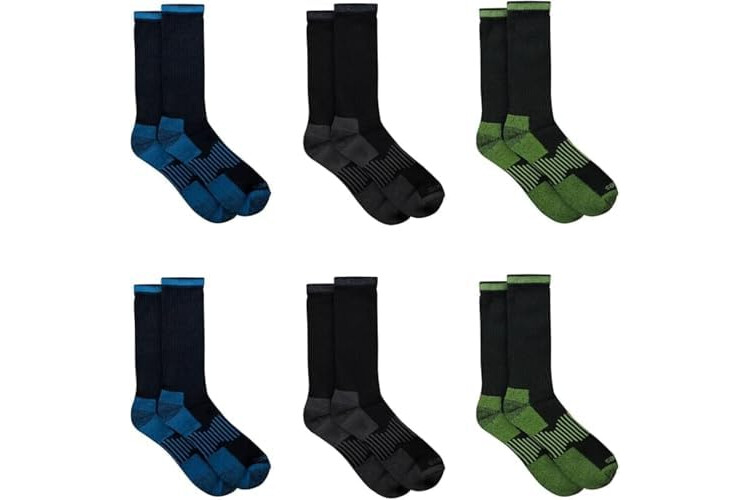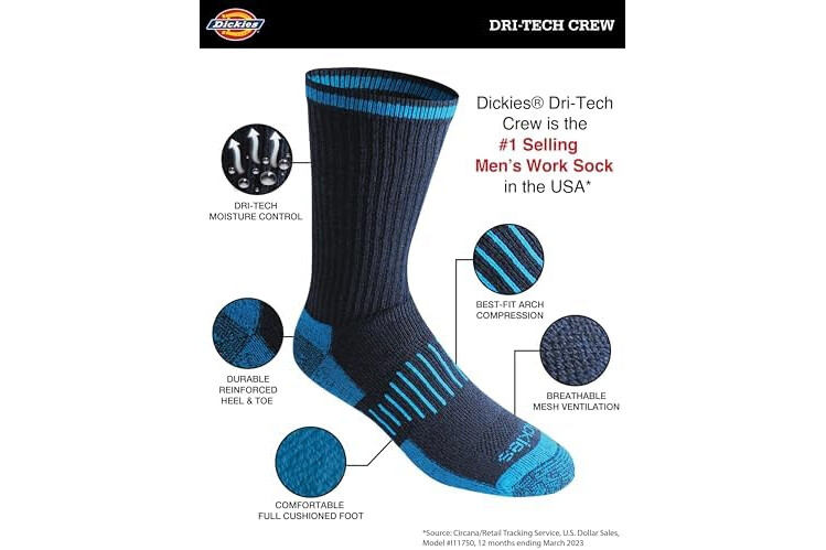 Dickies Men's Dri-tech Original Moisture Control Crew Socks Multipack, Black (6 Pairs), Shoe Size: 6-12, Pack of 6