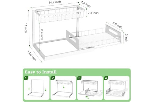 【L-SHAPED DESIGN FITS AROUND PIPES AND GARBAGE DISPOSALS】 The narrow top basket mounts left or right to clear your plumbing. The wide lower tier reclaims full vertical space under the sink, turning a blocked corner into organized, easy-to-use cabinet storage.