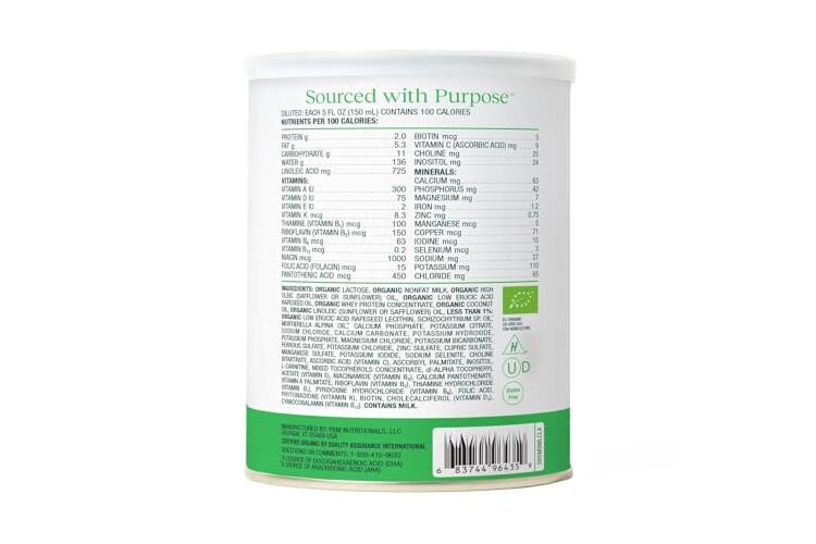 CLEAN INGREDIENT ORGANIC FORMULA: Crafted with organic, nutrient dense grass fed milk and NO corn syrup, sucrose, maltodextrin, palm oil, or soy allergens