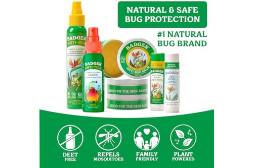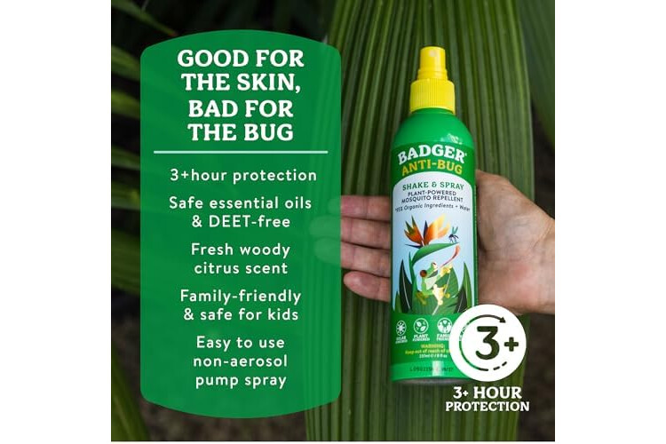 Badger Bug Spray, 3-Hour DEET-Free Mosquito Repellent, Family Friendly, Citronella & Organic Essential Oils, Natural & Vegan Insect Repellent Spray, 8 fl oz Family Size Aluminum Bottle, 2-Pack