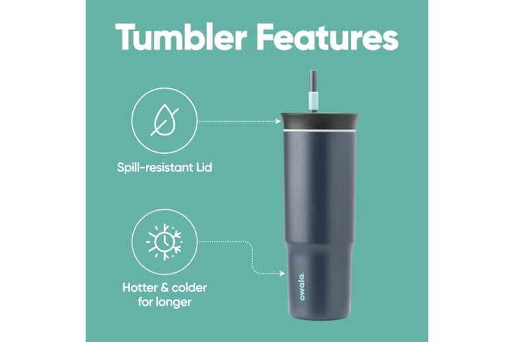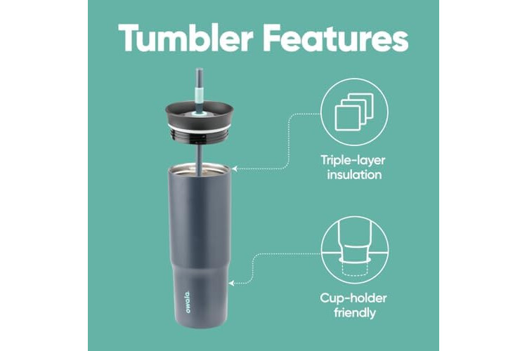 Owala Stainless Steel Triple Layer Insulated Travel Tumbler with Spill Resistant Lid and Straw, BPA Free, 24 oz, Black/Grey (Foggy Tide)