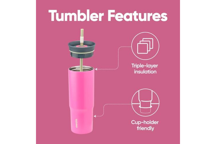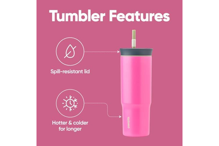 Owala Stainless Steel Triple Layer Insulated Travel Tumbler with Spill Resistant Lid and Straw, BPA Free, 24 oz, Brown/Pink (Watermelon Breeze)