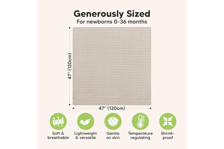 Generously Sized - Designed large at 47" by 47", the Lumi Muslin Baby Blanket is made to grow with your baby. Suitable for premies, newborns, infants and toddlers up to age 5. The perfect lovey for home, preschool, and grandparent's place.