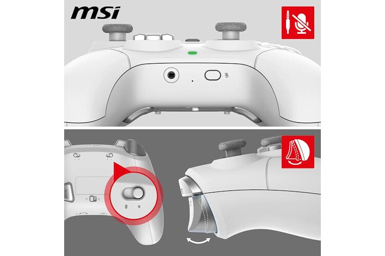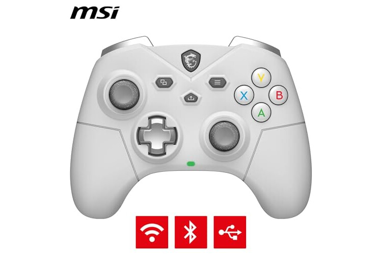 The MSI Force GC300 WIRELESS WHITE is a wireless PC gamepad controller that offers trimode connectivity for both wired and wireless gameplay. Designed for gamers seeking precision and comfort, the MSI FORCE GC300 WIRELESS WHITE features 2-level Hall effect triggers, dual rear programmable buttons, and immersive dual vibration feedback. Its ergonomic, anti-slip design ensures fatigue-free gameplay for up to 20 hours. Enjoy versatile connectivity with 2.4 GHz wireless, Bluetooth, and USB Type-C to A options, while the MSI Center offers advanced customization to unlock the controller’s full potential.