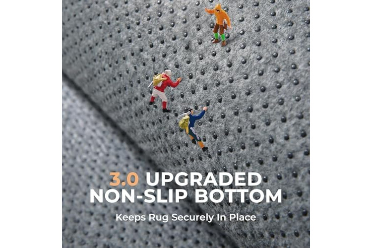 Build for Child Safety: Watch how our 5.3 oz/yd² rubber-dot backing grips hardwood, tile, or vinyl! No slips during playtime or tummy time