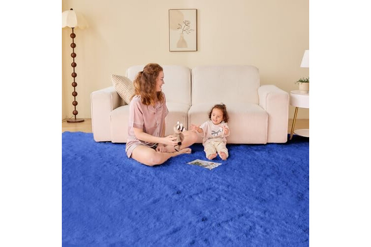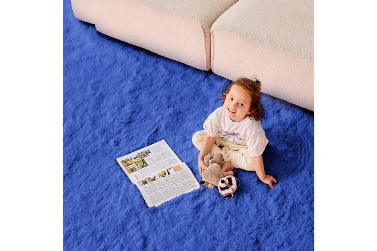OPPODREAM 8x10 Royal Blue Rugs for Bedroom, Ultra-Soft Fluffy Area Rugs for Living Room, 8 x 10 Shag Carpet for Nursery, Kids, Girl, Boy, Baby, Plush, Fuzzy, Shaggy, Cute Home Decor