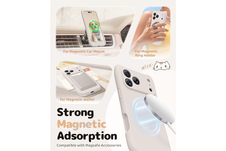GolbinBox Magnetic for iPhone 17 Pro Max Case, [Compatible with MagSafe] [Full Camera Protection], Liquid Silicone Shockproof Phone Cover with Cute Cat Ears for iPhone 17 Pro Max 6.9'', Stone