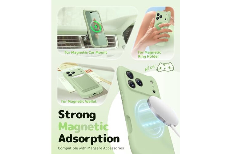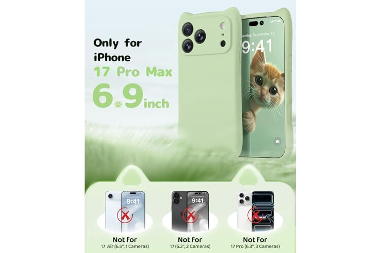 GolbinBox Magnetic for iPhone 17 Pro Max Case, [Compatible with MagSafe] [Full Camera Protection], Liquid Silicone Shockproof Phone Cover with Cute Cat Ears for iPhone 17 Pro Max 6.9'', Pale Green
