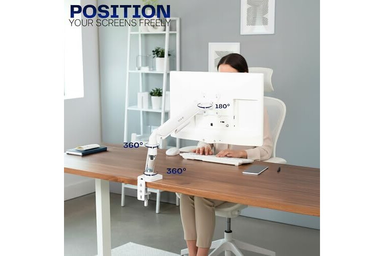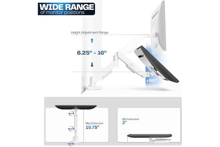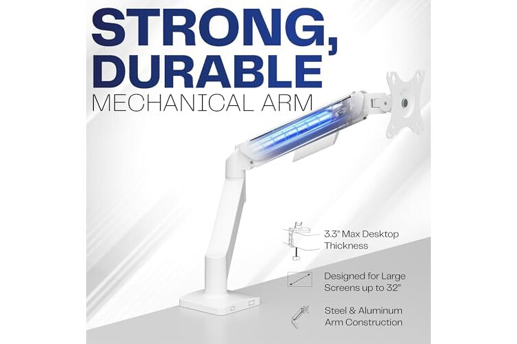 Mechanical Spring Adjustment: Toolless monitor placement with perfect counterbalance presentation in all directions. Please Note: The back of the arm will extend past the edge of your desk