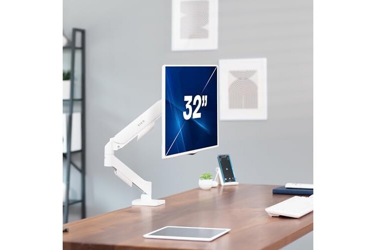 VIVO Single Monitor Stand, Fully Adjustable Arm for 17 to 32 inch Screen, Mechanical Articulating Desk Mount, Gaming and Office Setups, VESA 75x75, 100x100, Max 19.8 lbs, Classic, White, STAND-V001OW